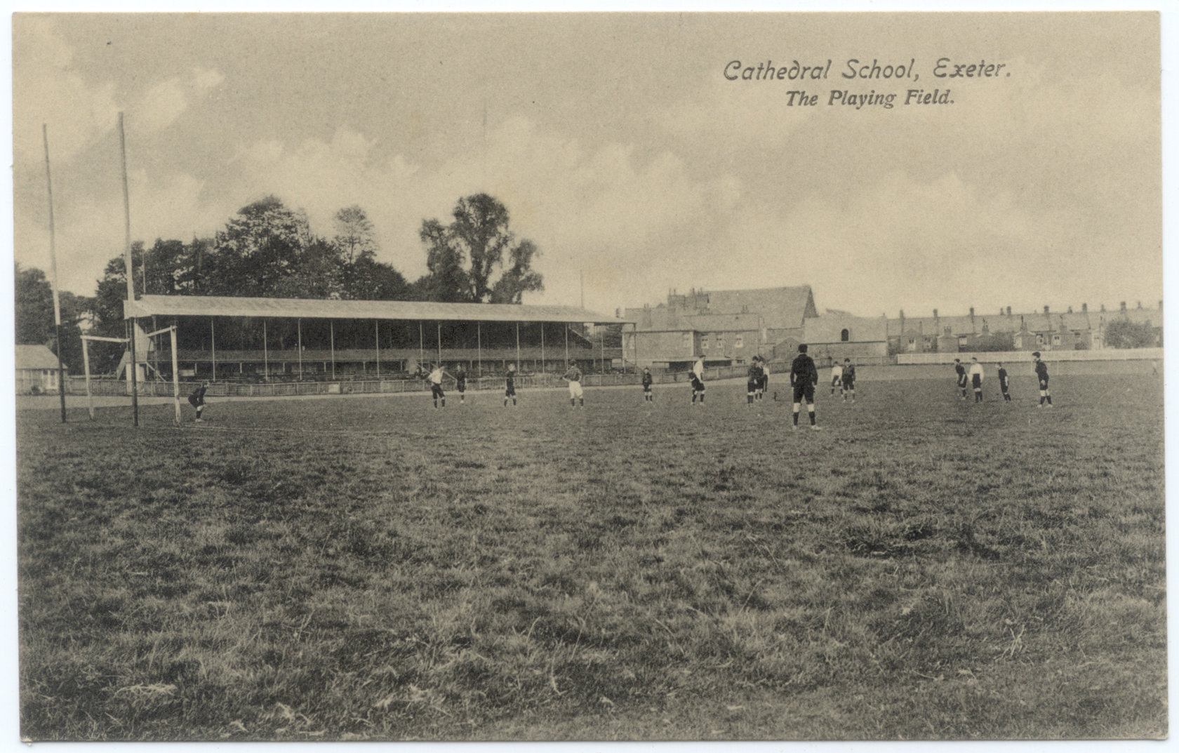 The Playing Field This is the former ground of Exeter Rugby Club, known as the County Ground, situated in the St Thomas area of Exeter until 2006. This photo is featured on the web page of the history of Exeter Chiefs, but there is no comment that the players are actually from the Cathedral School. |