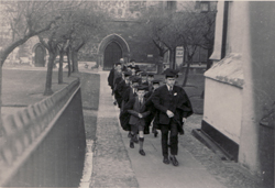 Choristers processing through cloisters - 1967