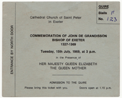 Grandisson Centenary service ticket - 1969