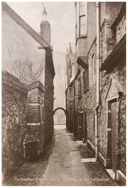 An alley to the south led to the Cathedral Close while another double door gate at the north end gave access to the town. Flannel suits and caps were worn on days off, with Eton suits, Eton collars and mortarboards for the twice-daily crocodile to and from the Cathedral.